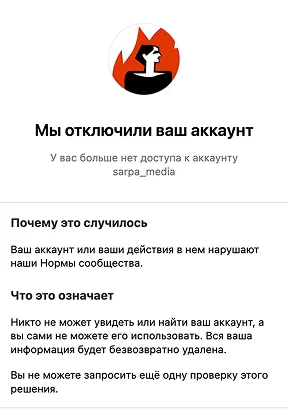 Статус: инстаграм-аккаунт удалён 30 января; восстановлен спустя сутки. Также был удален инстаграм-аккаунт шеф-редакторки издания Яны Моделовой, который позже удалось восстановить через рекламный кабинет Meta.